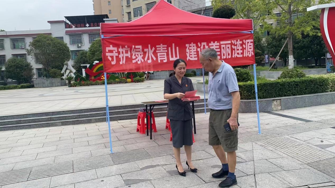 为迎接首个全国生态日,增强辖区群众对生态文明建设的认识,引导更多群众积极参与到生态文明建设和绿色发展中来,8月15日,涟源市人民法院开展生态环境法治普法宣传活动。